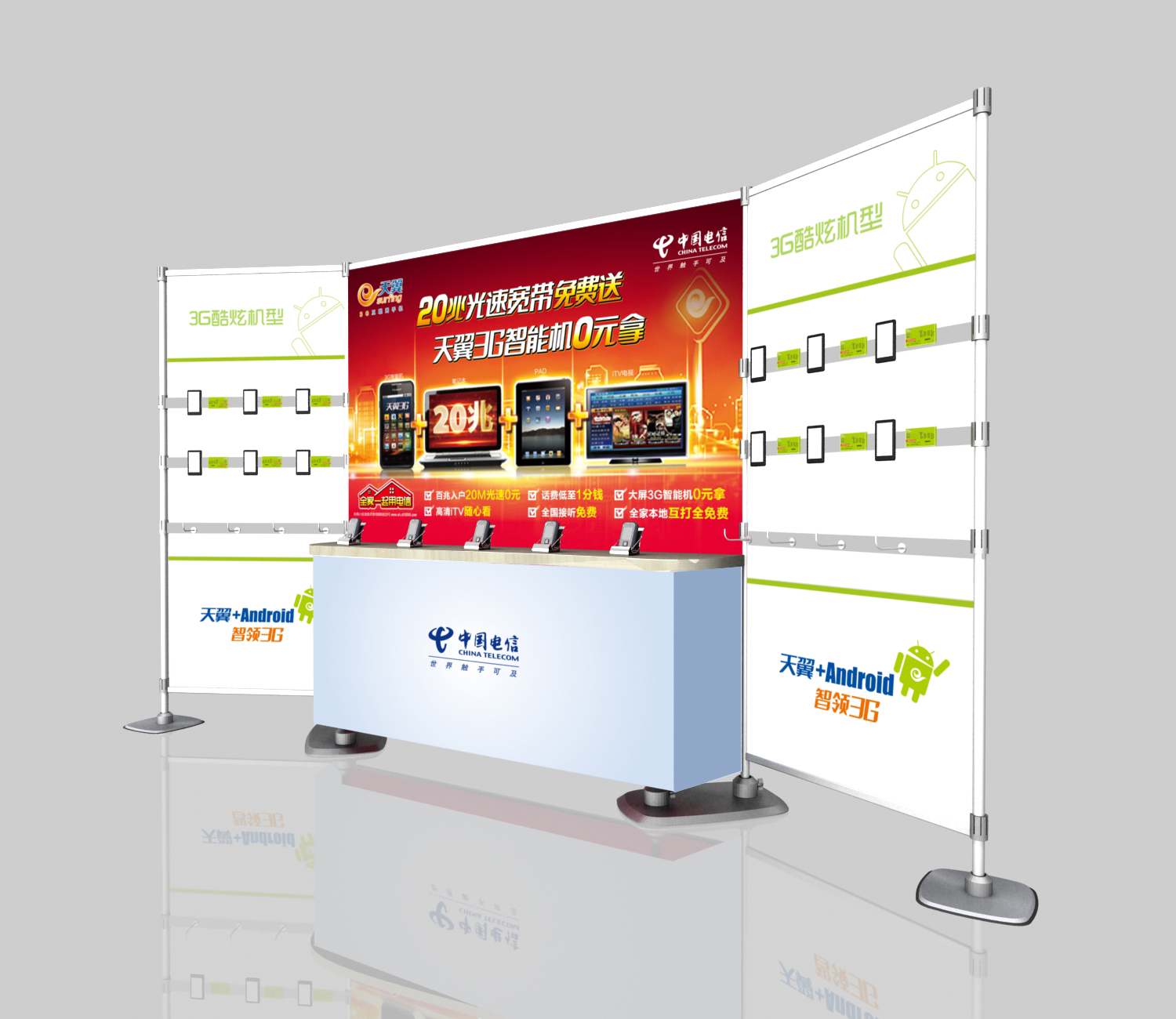 中國移動全球通手機(jī)宣傳攤位采用的速展展架等多種廣告展示產(chǎn)品,打造出中國移動全球通手機(jī)熱銷的場面。